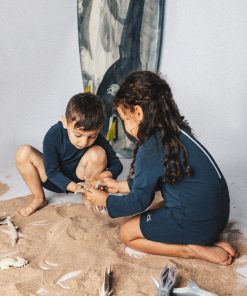 Pensée pour les premiers bains, les longues journées au soleil et les jeux sans fin ; cette combinaison unisexe est confectionnée dans un tissu de haute qualité à la fois imperméable, respirant et ultra doux. Elle a comme pouvoir magique de protéger la peau fragile de nos tous petits contre les rayons, tout en les laissant libres dans leurs mouvements. Sa coupe quant à elle, met en valeur la silhouette de nos petits avec tendresse et confort.